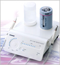ペリオフロー/超音波スケーラーたばこのヤニやコーヒー、食物による色素沈着を微細な粒子により除去します。歯表面を傷つけることなく除去できるので色素の再沈着を抑制できます。また、細いチップをつけることによって、歯肉ポケット内の歯面を滑沢に清掃する事も出来るようになりました。 |