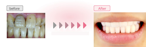 歯並びの乱れた部分を削り、セラミッククラウンをかぶせて歯並びを美しくする矯正方法です。セラミックは天然歯と同様に白く、丈夫で、変色もなく、歯垢・茶渋・口紅等もつきにくい、大変すぐれた材料です。短時間で治療ができ、歯並び、歯の色、形を一度に治せる矯正方法です。